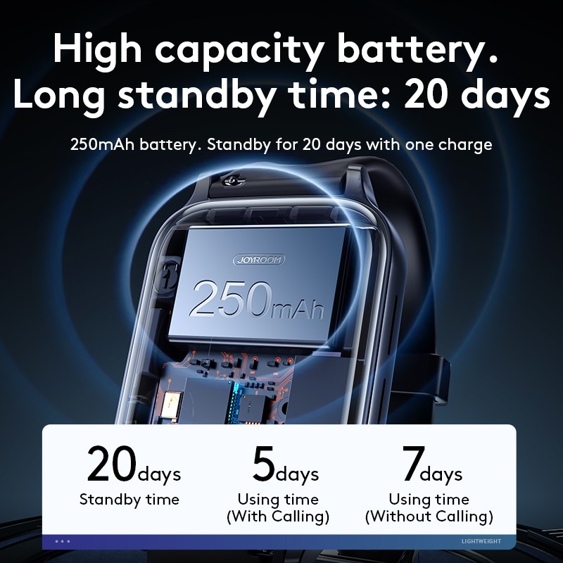 3. Large-capacity battery: 250mAh ultra-long battery life of 12 days, standby time of up to 20 days, intelligent power saving mode, continuous power