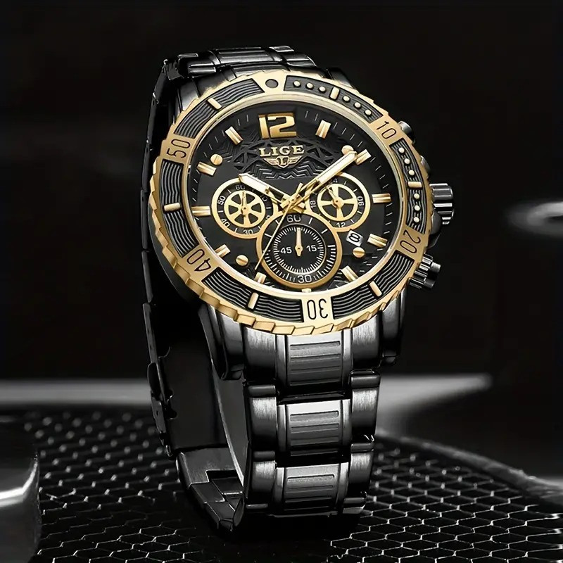 LIGE 8990E Mens Watches Top Luxury Brand Waterproof Sport Wrist Watch Chronograph Quartz Military Genuine Full Steel Relogio Masculino