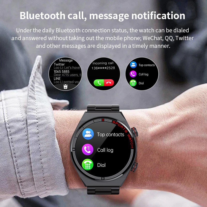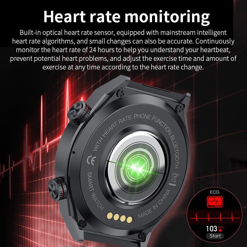 Basic functions: date/day of the week display, weather push, physiological cycle (APP-gender setting is female only), countdown timer, card management, remote photo taking, sedentary reminder, pedometer, distance, calories, heart rate/blood pressure/blood oxygen/stress/cardiac/body temperature/sleep monitoring, Bluetooth music control, incoming call reminder, SMS reminder, social app message reminder, alarm reminder, exercise mode, exercise mode, exercise mode. Raise hand to light up screen, find phone, stopwatch, reject call, do not disturb mode, multi-dial switch, custom dial, brightness adjustment, firmware upgrade, etc.