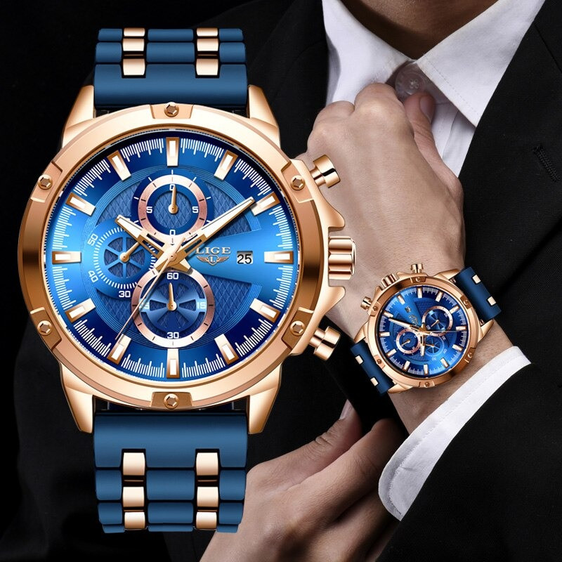 LIGE Mens Watches Brand Luxury Dial Clock Male Fashion Silicone Waterproof