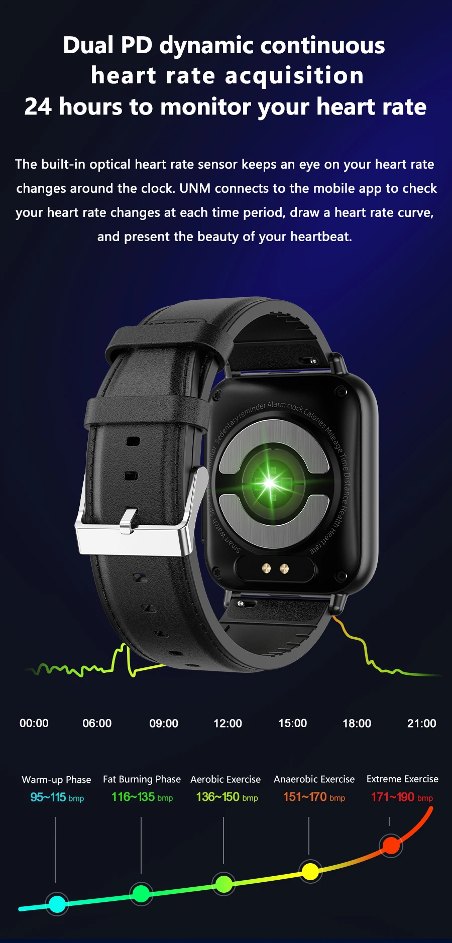 Non-invasive blood glucose, ECG, dual PD dynamic continuous heart rate collection + 1.91-inch full touch screen, ECG function, AI medical diagnosis, temperature monitoring, blood oxygen monitoring, respiratory rate.
