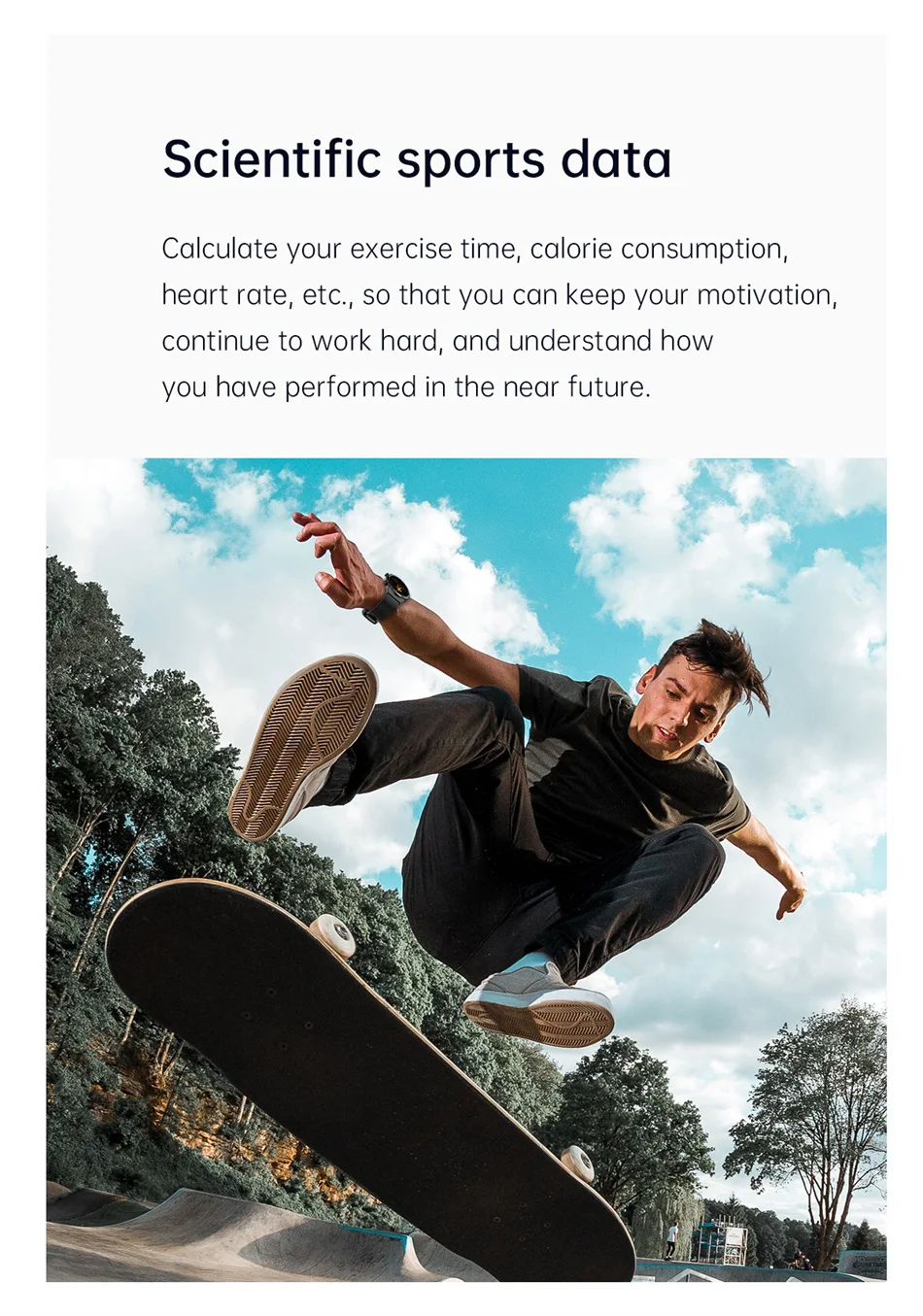 Multi-sport: Walking/outdoor running/indoor running/hiking/rugby/tennis/football/basketball/badminton/jumping rope/riding/dancing/gym/golf/yoga/etc. 100+ sports modes